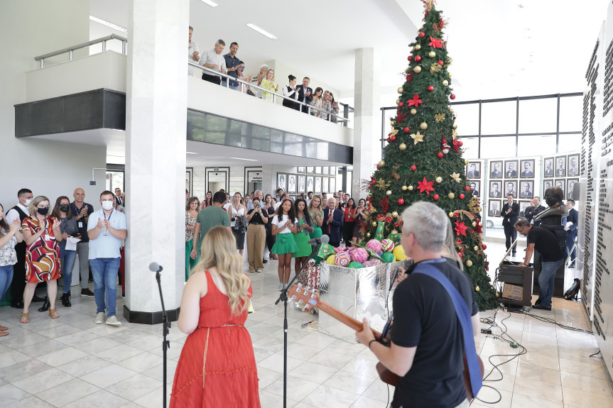 Um momento regado a solidariedade e música natalina, com a participação dos servidores Beatriz Salmen e Marcos Souza, além de Márcia Regina que cantaram para alegria e emoção de todos. E ainda, com a presença do presidente da Casa de Leis, o deputado Ademar Traiano (PSD). “Hoje é um dia muito especial para esta Casa, que conta com servidores verdadeiramente comprometidos com os que mais precisam. E fizemos questão de este ano contemplar, com os brinquedos, os filhos dos nossos funcionários e funcionárias terceirizados, que colaboram com a limpeza e os reparos de todos os espaços da Assembleia”, enfatizou.