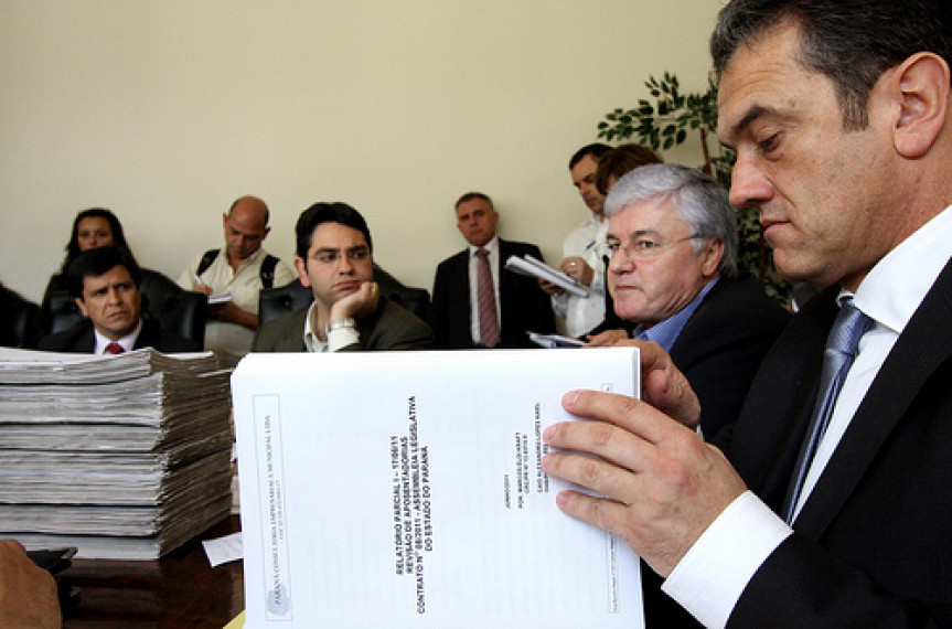 Além do TCE, a Paraná Previdência também receberá o levantamento. Desde o início deste ano, a Assembleia mantém convênio técnico com a Paraná Previdência para análise das aposentadorias. Atualmente, o pagamento das aposentadorias dos servidores efetivos gera despesa mensal de R$ 3,4 milhões, o equivalente a R$ 44,2 milhões por ano. A expectativa do presidente e do 1º secretário é que ocorra uma revisão nesses números. “Não podemos arbitrar um valor, mas queremos acreditar que é possível diminuir em 50%”, disse Rossoni.