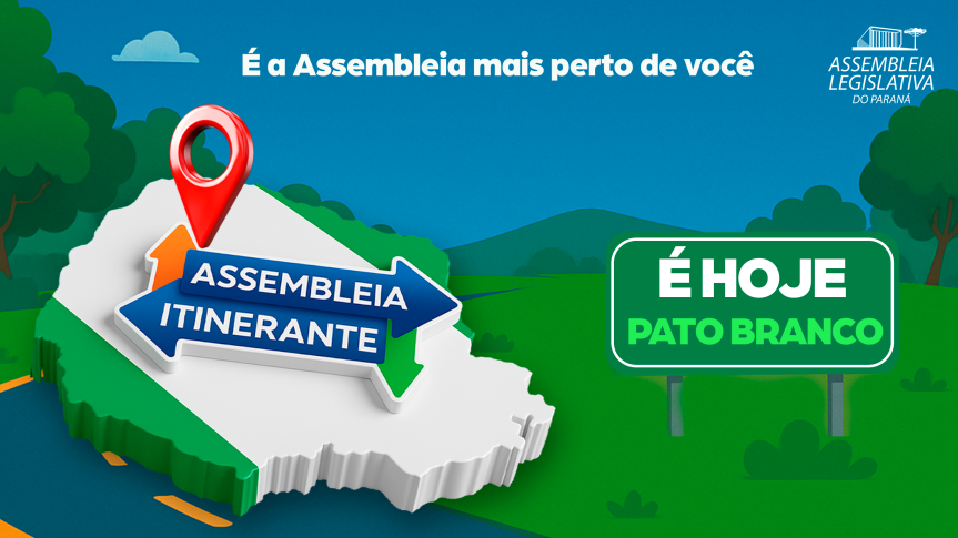 A Assembleia Legislativa do Paraná realiza nesta segunda-feira (10) a 33ª edição da Assembleia Itinerante, em Pato Branco, no Sudoeste do Estado. O evento será realizado às 18h, durante a ExpoPato 2025, no Parque de Exposições, localizado na Rua Benjamin Borges dos Santos, 600, Bairro Fraron.