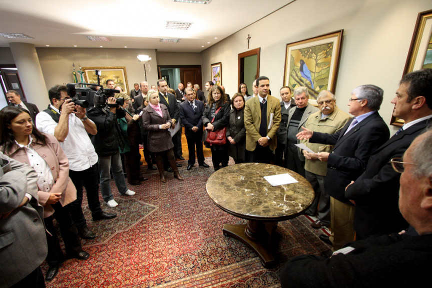 A Comissão Executiva da Assembleia Legislativa assinou hoje (18) de manhã, no gabinete da Presidência, termo aditivo ao convênio de cooperação firmado com a Paranaprevidência em 26 de maio de 2009, para atualização dos dados cadastrais dos servidores ativos e aposentados da Casa, bem como de seus dependentes. Trata-se de um procedimento prévio para que as aposentadorias passem a ser processadas em conjunto pelos dois órgãos.