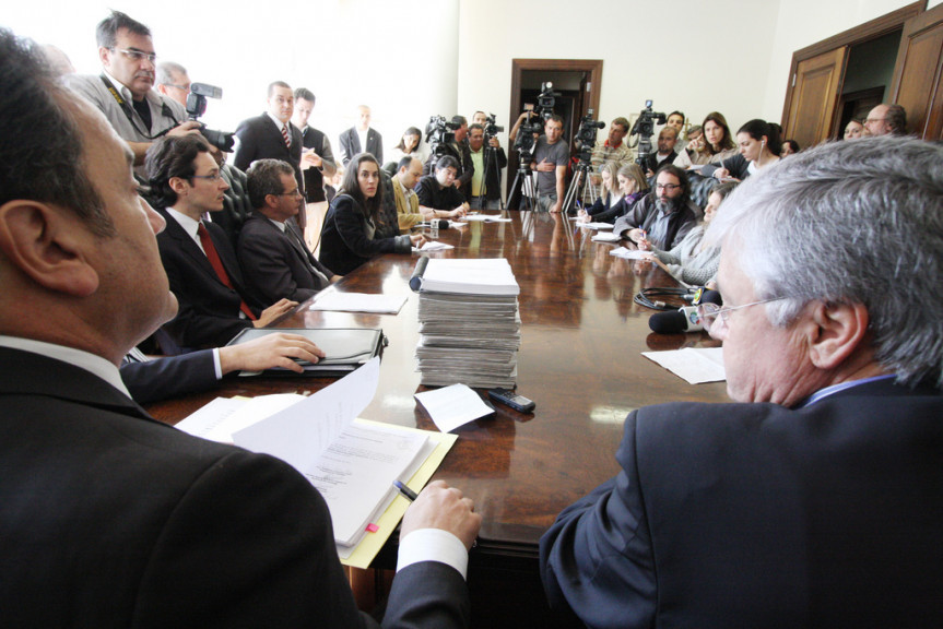 Auditoria - Rossoni e Plauto Miró apresentaram hoje de manhã, na sala da Presidência do Poder Legislativo, o relatório da revisão das aposentadorias pagas a seu quadro de inativos. Contratada para realizar o levantamento, a empresa Paraná Consultoria analisou 302 aposentadorias constatando que em pelo menos 90% delas existe algum tipo de irregularidade, uma vez que foram concedidas pela Casa sem o devido registro junto ao Tribunal de Contas do Estado (TCE/PR). Nesses casos, fica caracterizado, no mínimo, erro de procedimento, pois obrigatoriamente todo o ato aposentatório deve passar pela análise do TCE (art. 75, inciso 3º, da Constituição Estadual).